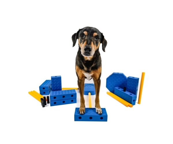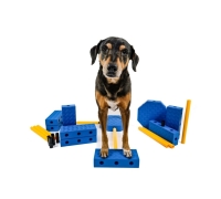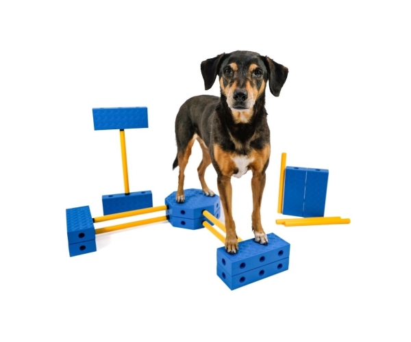 Alle onderdelen zijn vervaardigd uit stevig en duurzaam materiaal en afgewerkt met een slipvaste Thermal Plastic Rubber toplaag. Hierdoor staat de hond stabiel en veilig op vrijwel iedere ondergrond. De hoog-contrast kleuren geel en blauw zijn afgestemd op het zicht van honden en dragen bij aan betere focus, nauwkeurigere bewegingen en meer zelfvertrouwen tijdens het trainen.