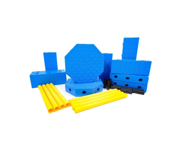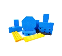 De set bestaat uit 2 octagon blokken, 8 rechthoekige blokken, 16 connectoren en 12 tubes.
