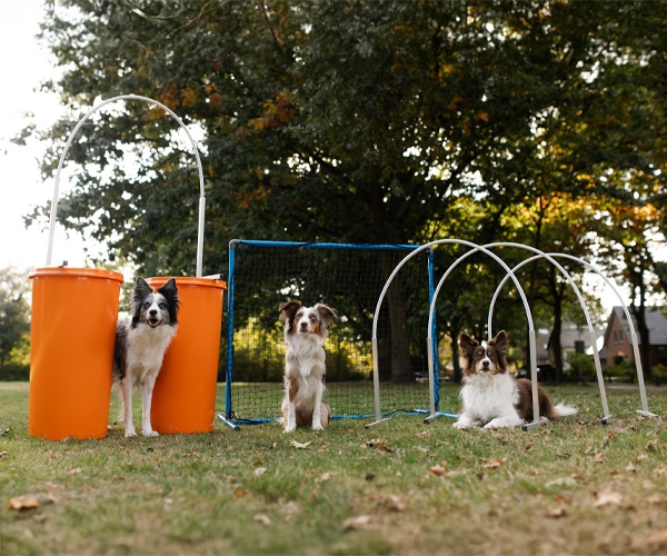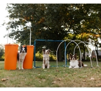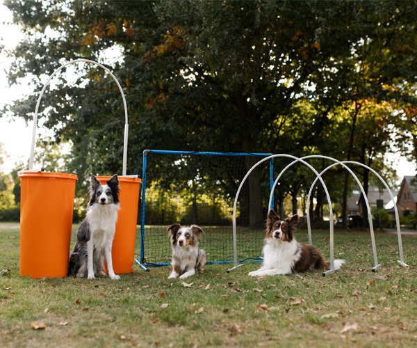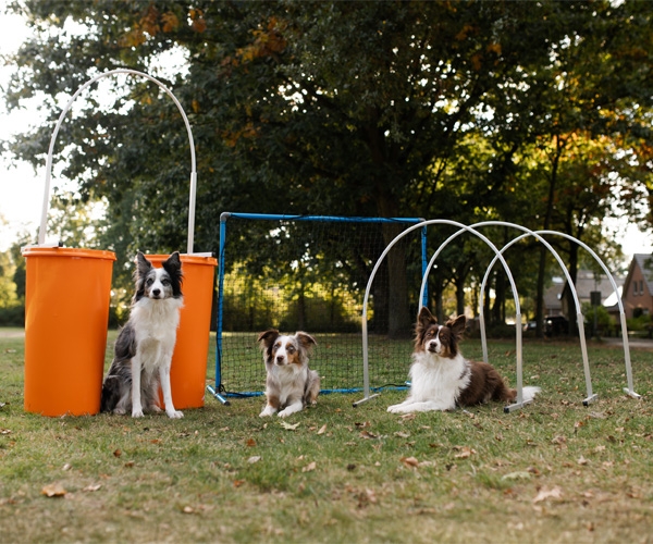 De opstelling van het parcours wordt in een vloeiende lijn opgezet zodat er geen belastende bochten hoeven worden gemaakt. Door telkens een ander parcours uit te zetten, blijf je jezelf en de hond uitdagen.