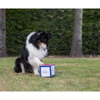Zowel thuis als op een hondenschool kun je eindeloos variëren met opdrachten. Gebruik de dobbelsteen bijvoorbeeld voor: