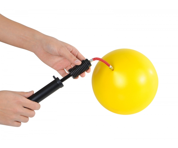 Een naaldpompje van merk Gymnic, met inhoud van 0,12 liter voor het oppompen van ballen met een klein ventiel (o.a. emotie ballen, bal voor snuitgolf, 33 cm balanskussens, franklin ballen of de Mooffz Stapstenen).